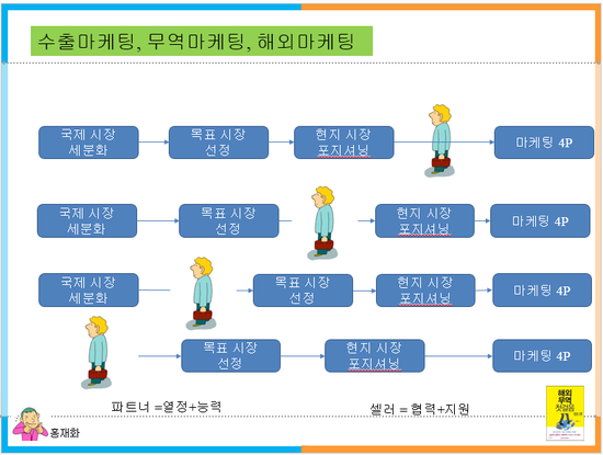 해외영업 전 과정을 NCS에 맞추어 만들고 있습니다. 처음에는 그리 어려울 것이라고 생각하지는 않았는데 생각보다 복잡해지고 있습니다. 일단 마케팅 교과서는 국내 마케팅위주로 되어 있어 참고하기가 쉽지 않습니다. 게다가 국제마케팅 교과서는 자금력, 인력, 그리고 정보력이 충분한 대기업 위주의 상황을 전제로 한 데 반하여, 제가 대상으로하는 목표는 이러한 마케팅 자원이 충분치 않은 중견기업, 중소기업의 해외 영업부서를 대상으로 하고 있거든요. 중소기업은 시장을 만든다기 보다는 만들어져 있는 시장의 상황에 적응을 잘하고, 틈새를 만들어가야 합니다. 그러다보니 고정된 마케팅 전략이라기 보다는 다양한 변수를 감안하고, 생각하지 못한 상황에 잘 적응해야 하는 전략을 구사해야 하기 때문입니다.